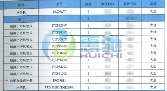 空調系統技術配置表
