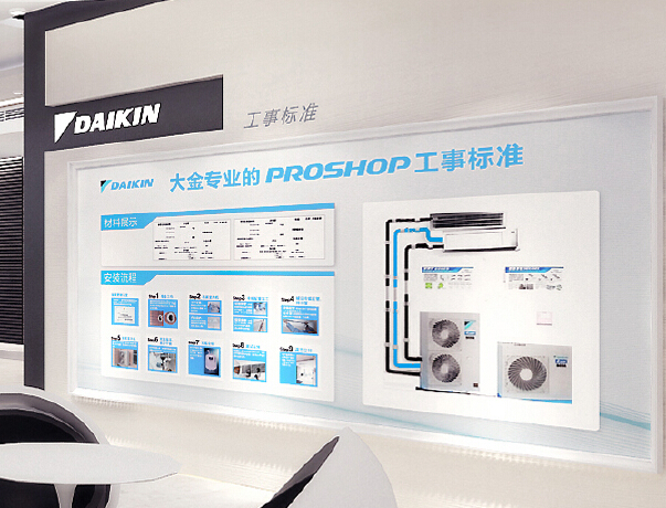 PROSHOP大金家用中央空調(diào)專業(yè)店,用戶可以親身感受大金全效家用中央空調(diào)的優(yōu)異性能。大金專業(yè)的PROSHOP銷售人員會(huì)綜合考慮用戶提出的需求:人員構(gòu)成、生活習(xí)慣、房屋的結(jié)構(gòu)、裝修方案及經(jīng)濟(jì)預(yù)算等因素,設(shè)身處地站在用戶的角度,對家用中央空調(diào)的功能選配、方案設(shè)計(jì)和選材安裝進(jìn)行完整的提案,打造專屬每一位用戶的個(gè)性化室內(nèi)空氣解決方案。