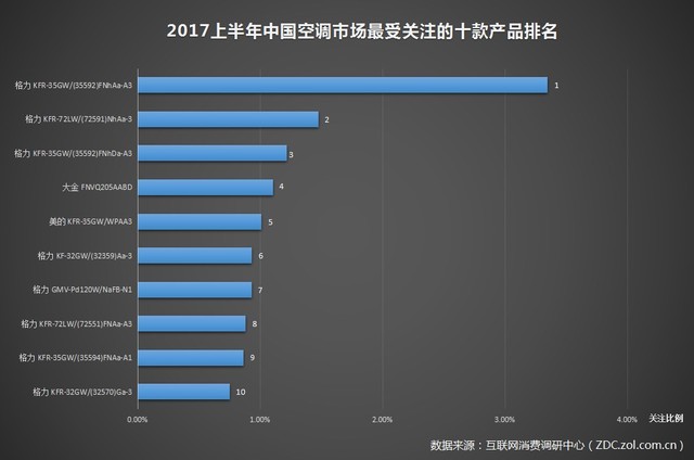 2017上半年我國空調(diào)市場最受注重的十款產(chǎn)品排名,在這10款空調(diào)單品中,格力居然占有了8款之多!擠進(jìn)前十的空調(diào)單品還有來自