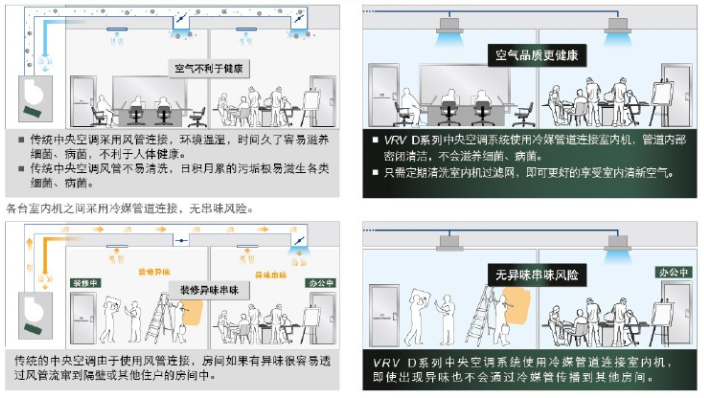 大金VRV D系列中央空調系統借助先進的控制技術實現了人性化的便利控制功能,滿足業主個性化空調使用需求。